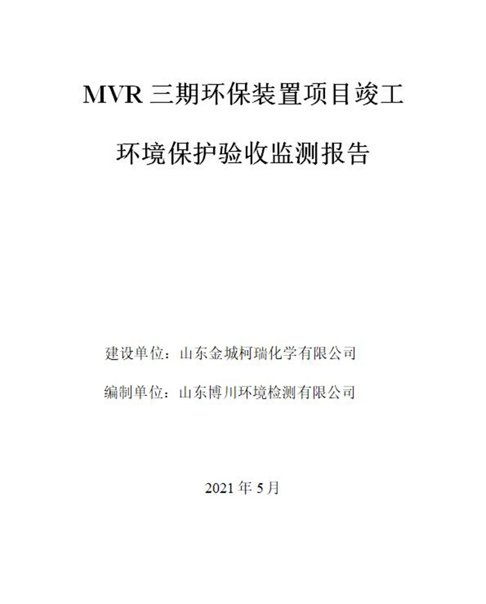 山东金城柯瑞MVR三期环保装置项目竣工环境保护验收监测报告